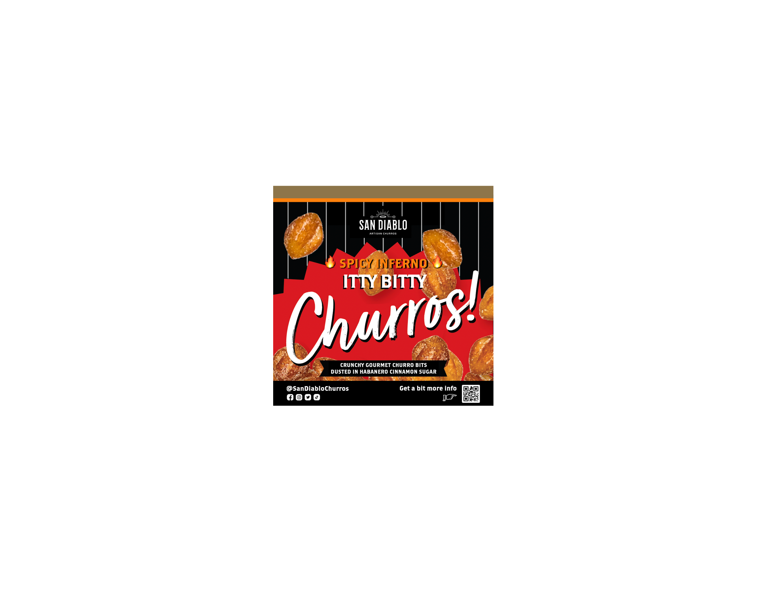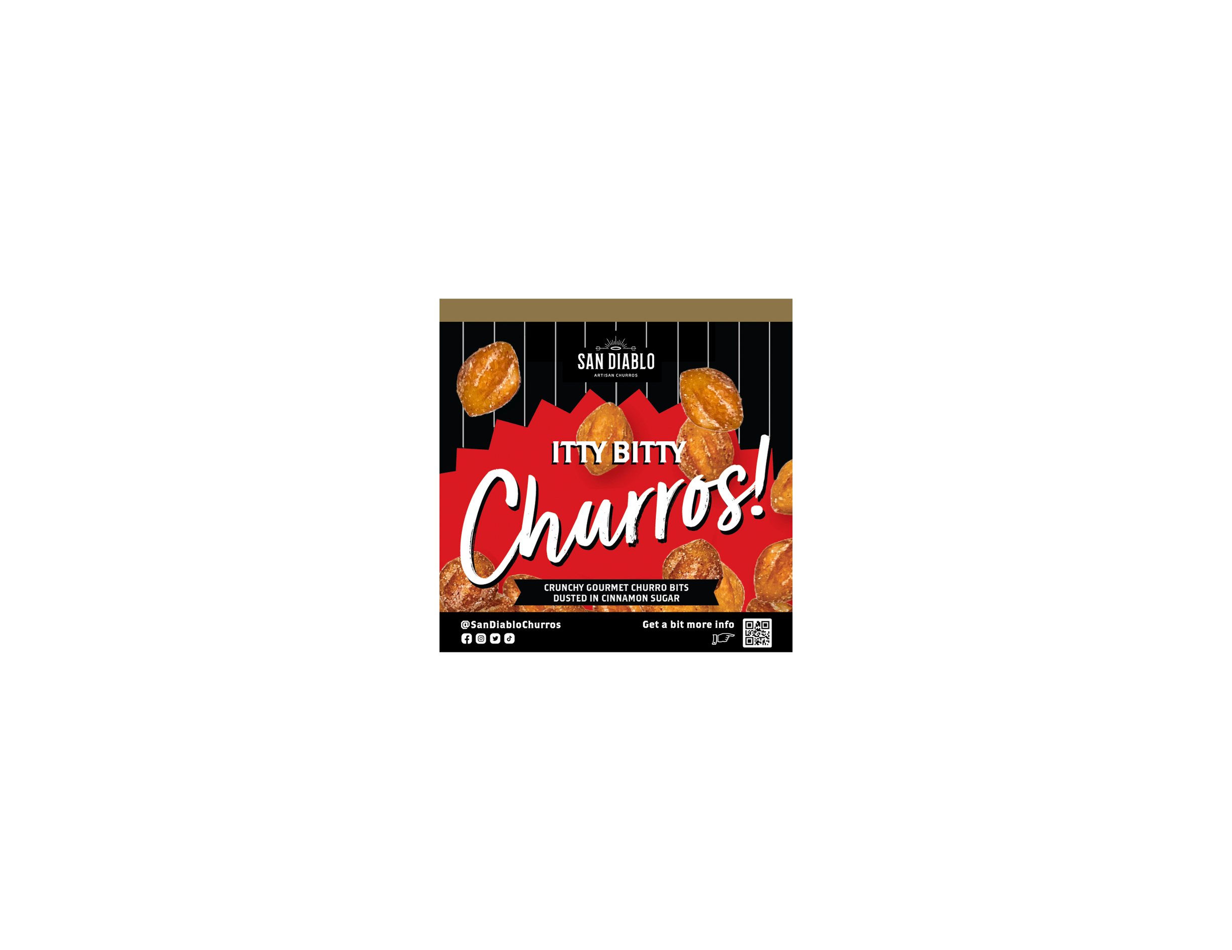 San Diablo’s newest invention and first-to-market, Itty Bitty Churros are the flavor-forward creation shaking up the dessert and snack world: crispy, cinnamon-sugar-dusted mini churros that are shelf-stable, ready-to-eat, and wildly versatile. They deliver bold, unforgettable flavor in a grab-and-go format with zero prep required and up-leveling dessert creations.